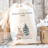 Personalised Luxury Premium Cotton Christmas Sack - Pink Bunny Design