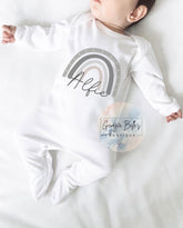 Grey/ Neutral Rainbow Personalised Vest / Babygrow / Sleepsuit