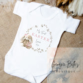 My 1st Easter Personalised Vest / Babygrow - Pink Bunny Wreath Design