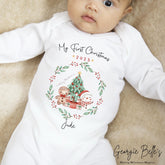 Personalised Christmas Sleepsuit / Bodysuit - First Christmas Wreath Design
