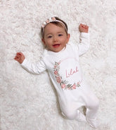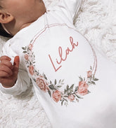 Pink Floral Wreath Personalised Vest / Babygrow / Sleepsuit