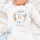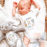 Beautiful personalised baby boys sleepsuit available with a matching personalised Soft Toy & Money box. Our 100% cotton baby clothes make the perfect gifts for new baby boys for all occasions, such as baby showers, christening or the upcoming Christmas season.