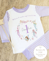Lilac & White Striped Personalised Birthday Pyjamas - Lilac Mermaid Wreth Design