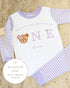 Lilac & White Striped Personalised Birthday Pyjamas - Lilac Bear Word Design