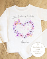 Plain White Personalised Birthday Pyjamas - Lilac Butterfly Heart Design