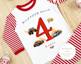 Red & White Striped Personalised Birthday Pyjamas - Red Car Design
