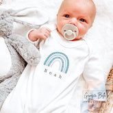Beautiful personalised baby boys sleepsuit available with a matching personalised Soft Toy & Money box. Our 100% cotton baby clothes make the perfect gifts for new baby boys for all occasions, such as baby showers, christening or the upcoming Christmas season.