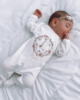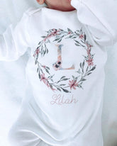 Floral Wreath Initial Personalised Vest / Babygrow / Sleepsuit