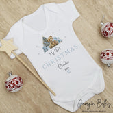 Personalised Christmas Sleepsuit / Bodysuit - First Christmas Blue Teddy Design