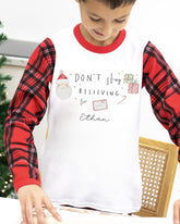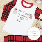 Tartan Family Matching Personalised Christmas Pyjamas - Don’t Stop Beliving Design
